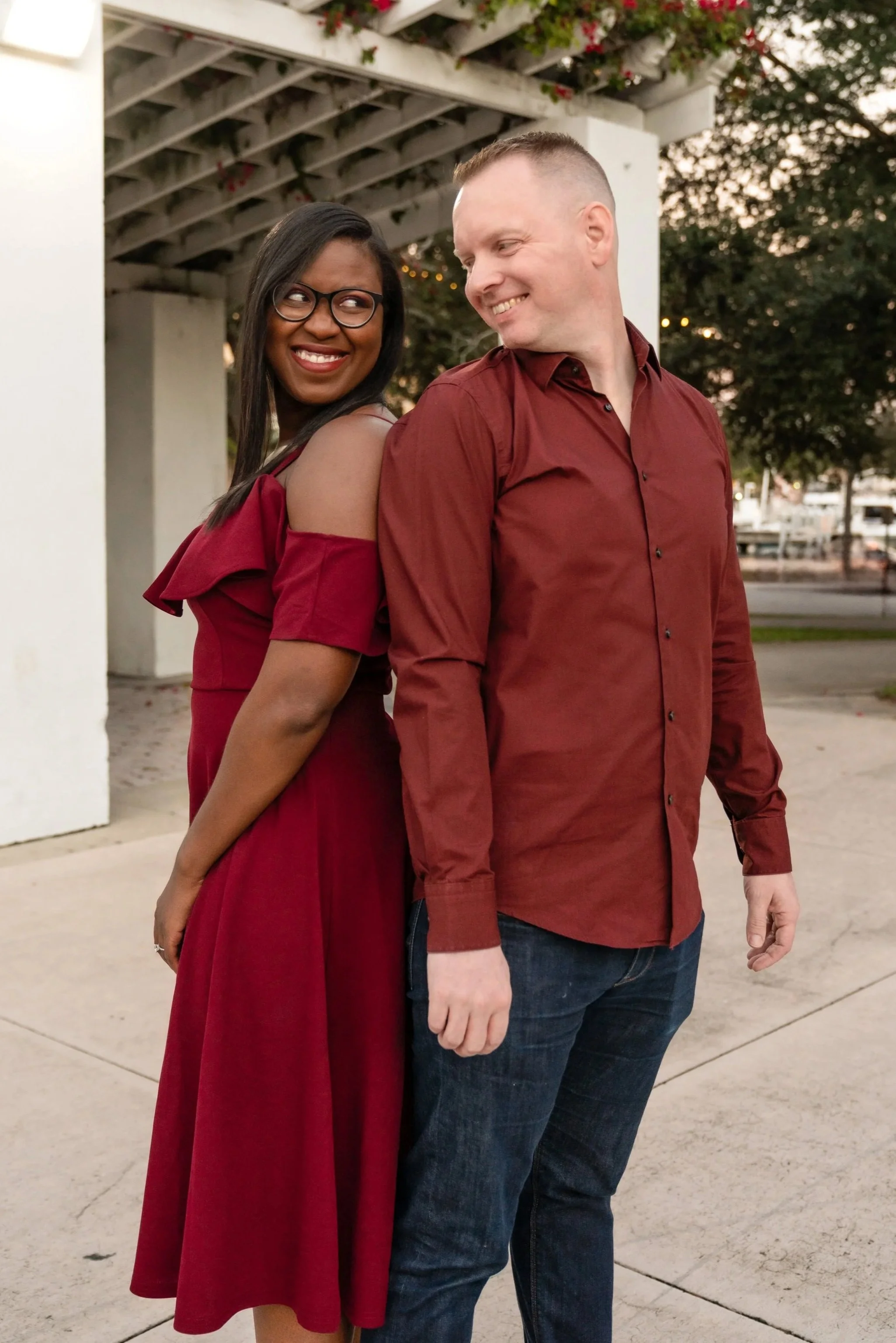 Whatever makes you feel comfortable and confident! Semi-formal attire is encouraged, along with dancing shoes. The ceremony will be indoors, but the reception is outdoors on concrete, so please plan footwear accordingly.